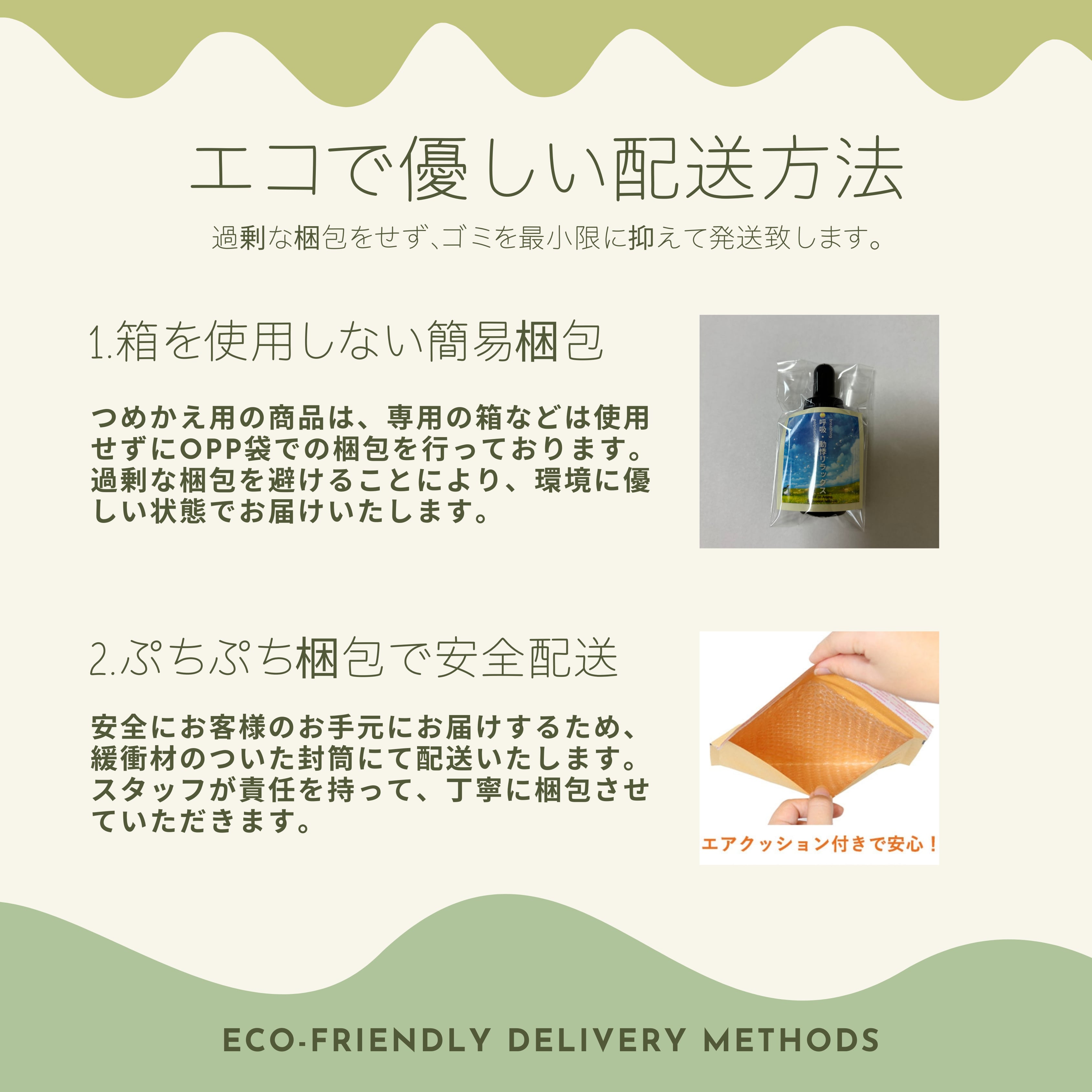 使用方法:スポイトを使って、アロマオイルをゆっくり注ぎます。容量はボトルの8~9割程度が目安(溢れ防止)。